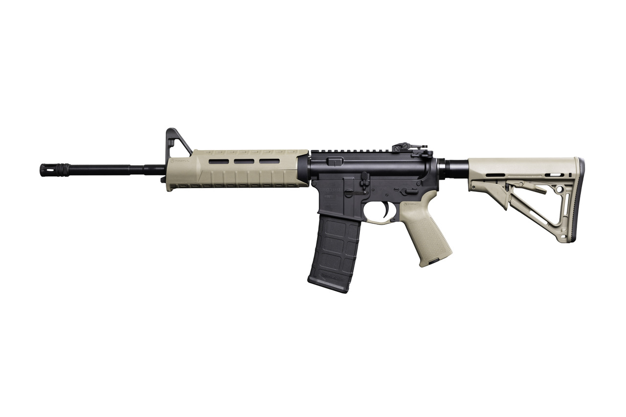 The Magpul MOE SL® hand guard, Magpul CTR® carbine stock, and Magpul MOE® grip make for comfortable shooting, while the Magpul MOE® enhanced trigger guard and mil-spec trigger provide precise control. The A2 flash hider and Midwest Industries Inc. Combat Rifle rear flip sight add to the rifle's functionality.